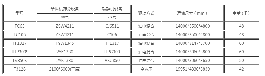 【移動式建筑垃圾破碎站技術參數】:
